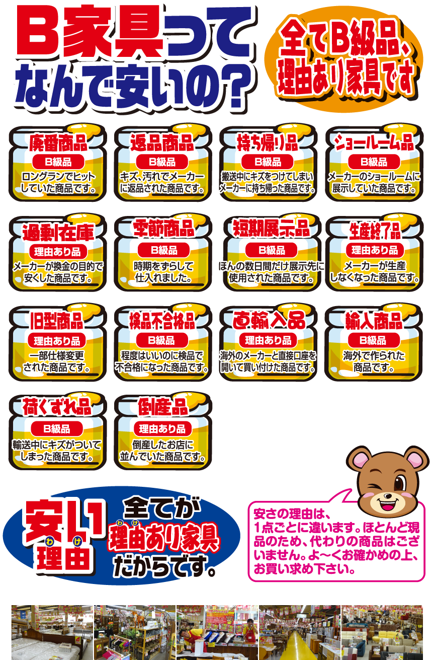 山武市、市原市の家具はB家具・アウトレットのBEST★バリュー!ソファー、ベッド、ダイニングテーブル、学習机の品揃え豊富です。
